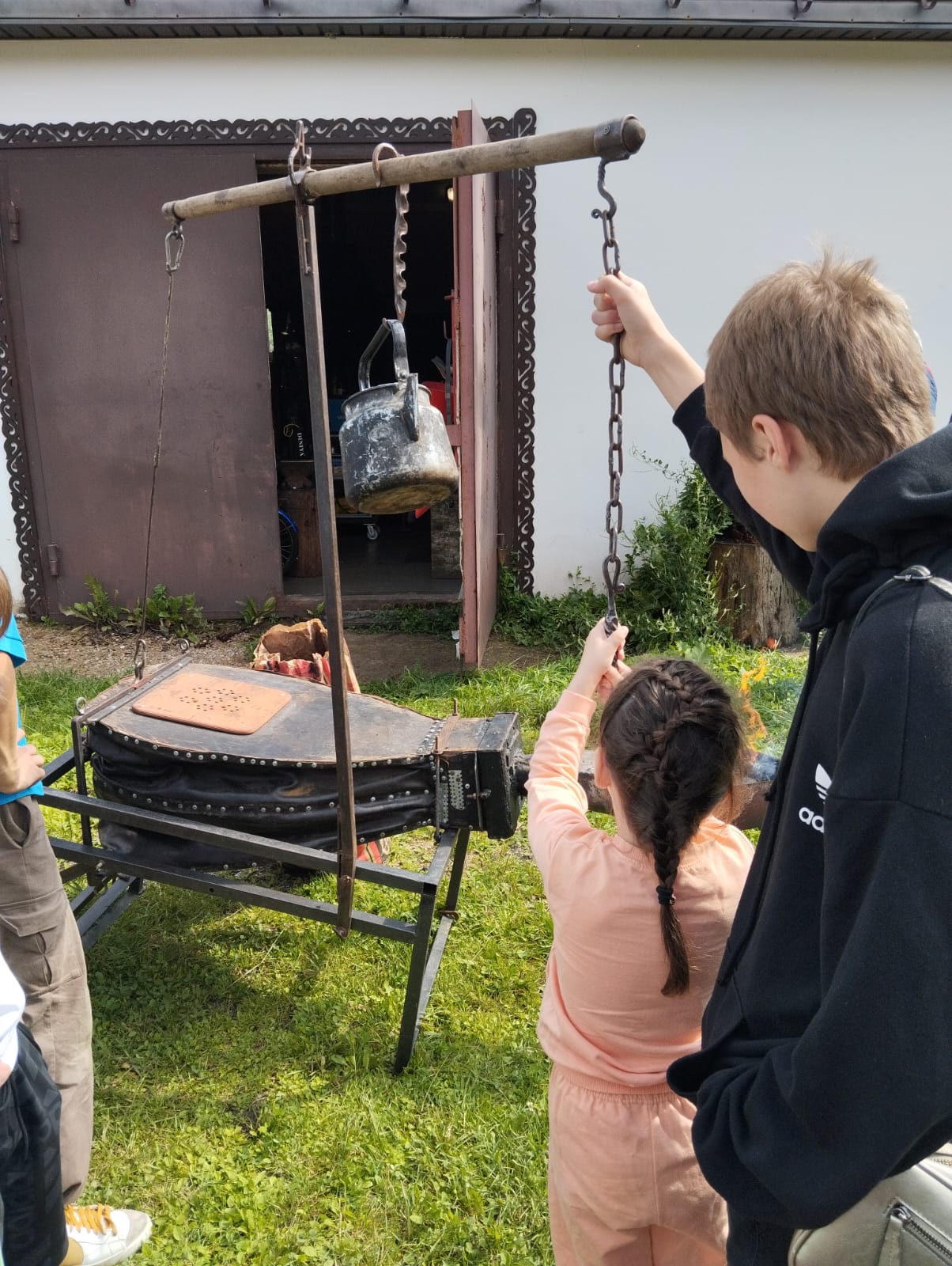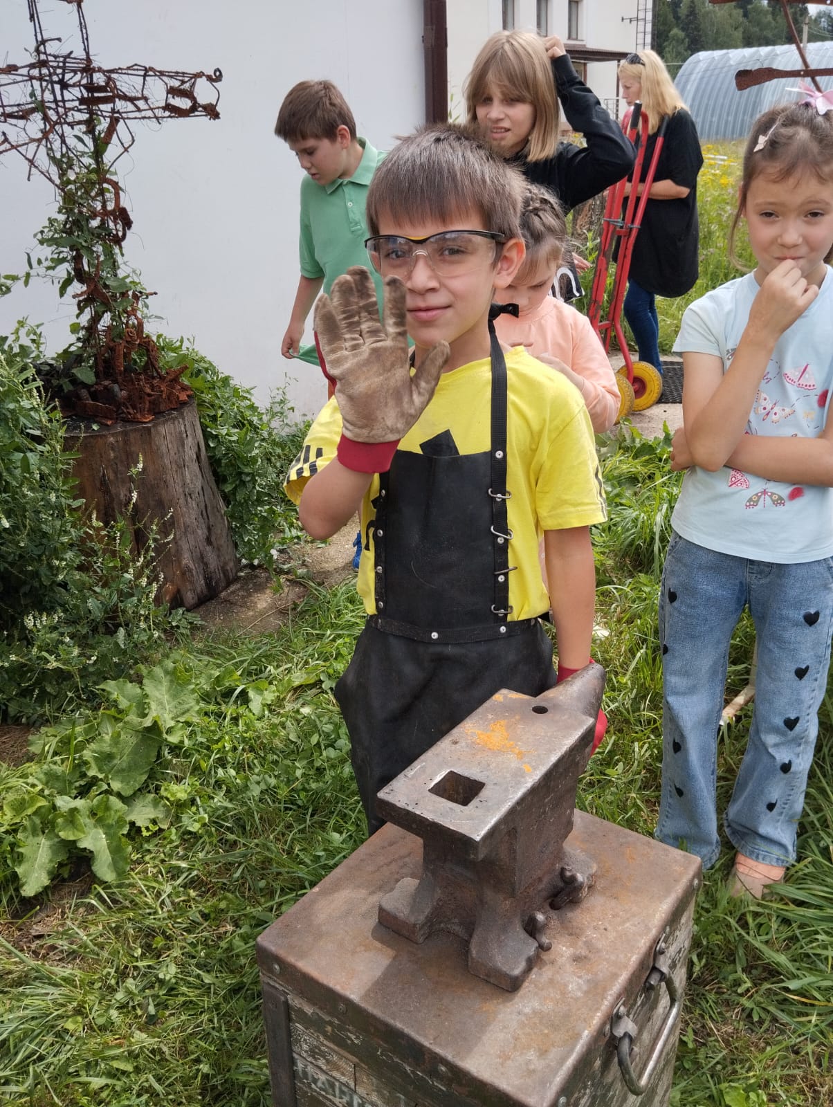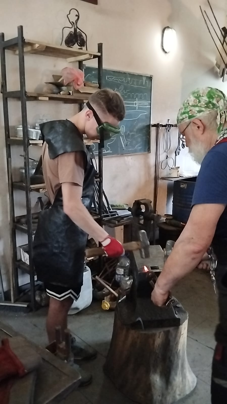 Первой остановкой стал Православный Центр Образования им. Преподобного Сергия, где ребята окунулись в атмосферу творческого и духовного развития. В кузнице Центра их встретил уникальный мастер своего дела — Георгий Баранов, член президиума Союза кузнецов России и преподаватель кафедры Художественного металла МГХПА им. С.Г. Строганова. Вместе с ним и его учеником Егором воспитанники сами выковали памятный гвоздь с клеймом Центра — символ своего участия и нового опыта.